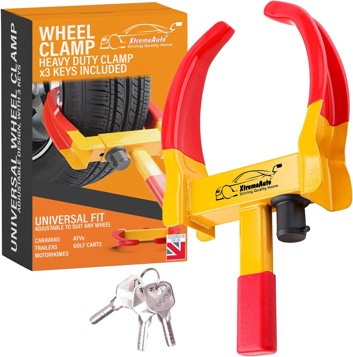 - ULTIMATE WHEEL SECURITY – The Xtremeauto Wheel Clamp Car Wheel Lock is your reliable choice for securing your vehicle’s tires. Crafted with heavy-duty materials, this lock offers the kind of protection you can trust.
